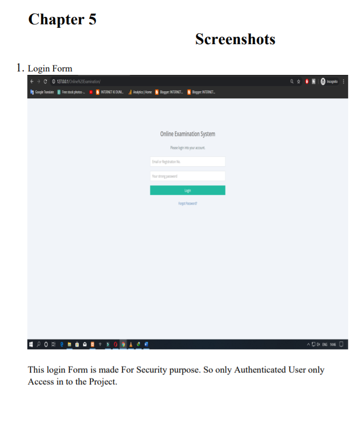 Online examination system helps students to offer a quick and easy way to appear for the test. It also provides the results immediately after the examination with 100% accuracy and security. Student can enter to perform exam only with their valid username and password. This examination contains multiple choice questions and appropriate number of options. There are no limitations on number of options and it can be randomized so same set of question will not appear to all student so it prevent manipulation. More than one option can be correct but the user can select only one option. This provides time limit. The user can see their results after completing the exam. This helps the students to write the exam from far distance and which can provide security and simplicity and other beneficial features to the user.