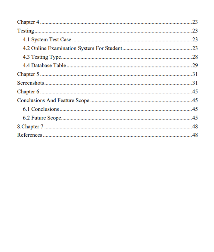 Project Report for Online Examination System developed in PHP and MySQL Free download of Readymade Complete Live Project Project Report, Source Code in PHP Script, MySQL Database script, Synopsis, Project Report for final year college student, project submission of PGDIT, BSC-IT, BCA, MCA, MBA, IGNOU, SMU, DOEACC. Download Includes Project Abstract Synopsis, Project Report, Demo, Flow Chart, DFD, Data Dictionary, Requirement Analysis, SRS, Flow Chart, Documentation.